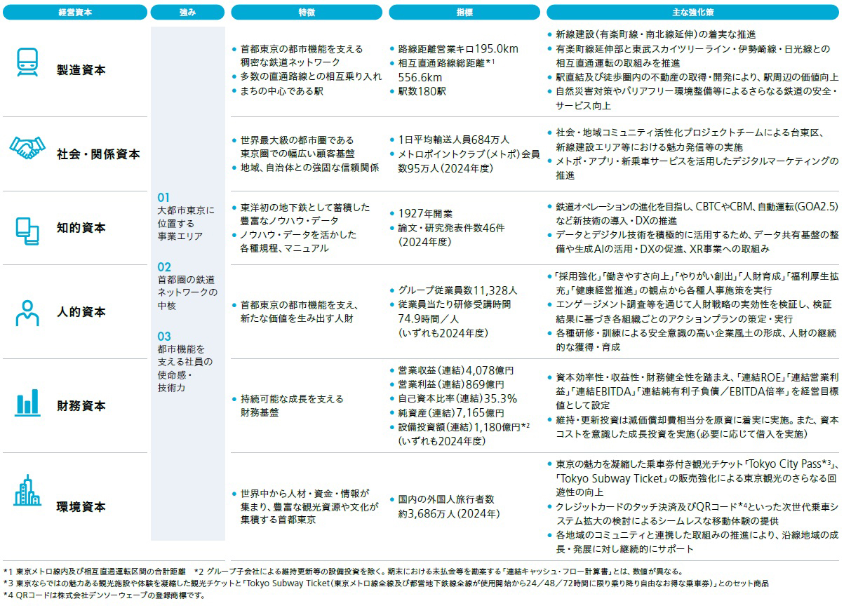 具体的には、東京の主要な観光施設のチケットと「Tokyo Subway Ticket」とのセット商品「Tokyo City Pass」等企画乗車券の販売強化・新商品開発によるインバウンド施策の推進、クレジットカードのタッチ決済及びQRコード※1を活用した新乗車サービスの展開、メトポ・東京メトロmy!アプリを中心とした顧客接点を活かしたデジタルマーケティングの推進に取り組みます。