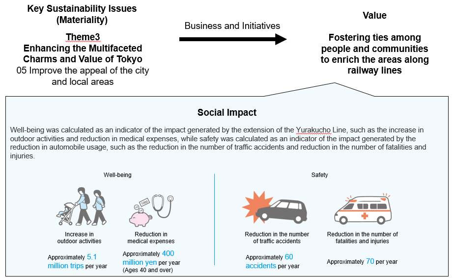 Focusing on the Yurakucho Line extension, we looked at the impact created from the perspectives of well-being and safety.