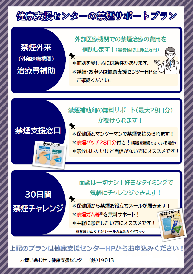 The head office and the Comprehensive Learning and Training Center are completely non-smoking facilities. We hold Metro No-Smoking Day in field workplaces, and close smoking areas during the day shift to encourage non-smoking. In addition, as part of our smoking cessation measures, we previously had an in-house smoking cessation support desk throughout the year and subsidized the cost of smoking cessation treatment at external medical institutions. From FY2025/3, we began providing individualized guidance on smoking cessation from physicians. We are continuing to work to create an environment that makes it easier for smokers to quit, in order to promote a complete ban on smoking throughout the company.