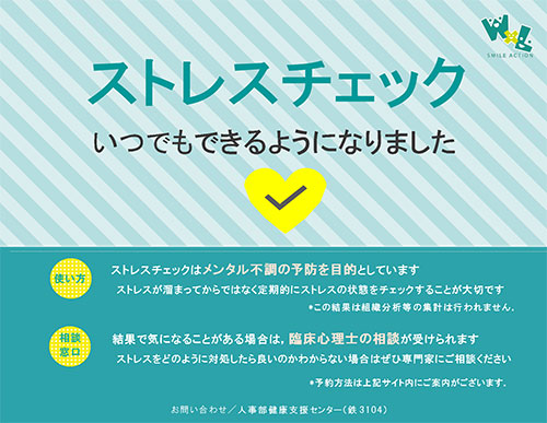 We have created an environment in which it is easy for employees to receive stress checks. The rate of stress checks is about 90% every year. We have systems in place so that employees can receive stress checks and consultations at a time which suits them. In addition, as part of our mental health measures, we provide annual self-care training for all employees and line-care training for managers and supervisors (both delivered online).