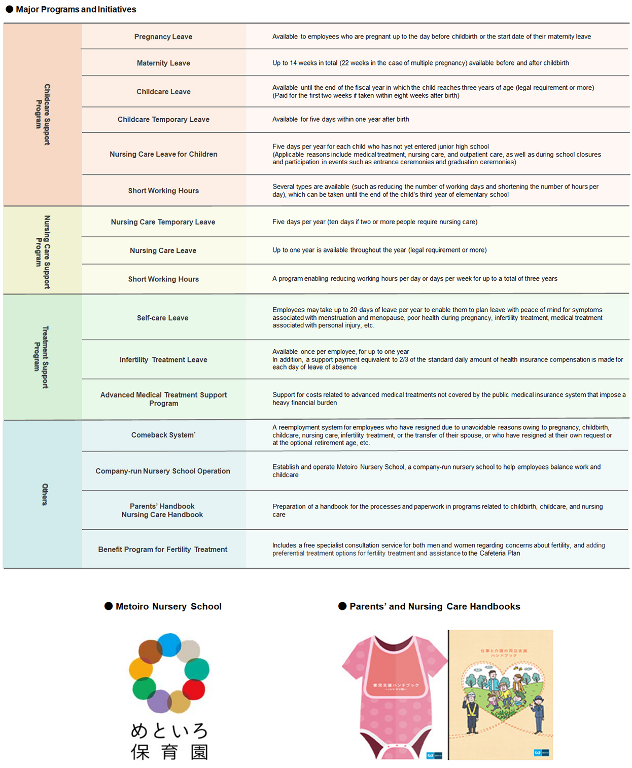 We have a variety of support systems in place to help employees balance their work and family lives and continue working with a sense of fulfillment and satisfaction. In terms of external evaluation, we have received Kurumin Certification for our formulation and implementation of action plans based on the Act on Advancement of Measures to Support the Development of the Next Generation.