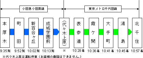 本厚木 → 北千住間(小田急線から東京メトロ線方面のみの設定)