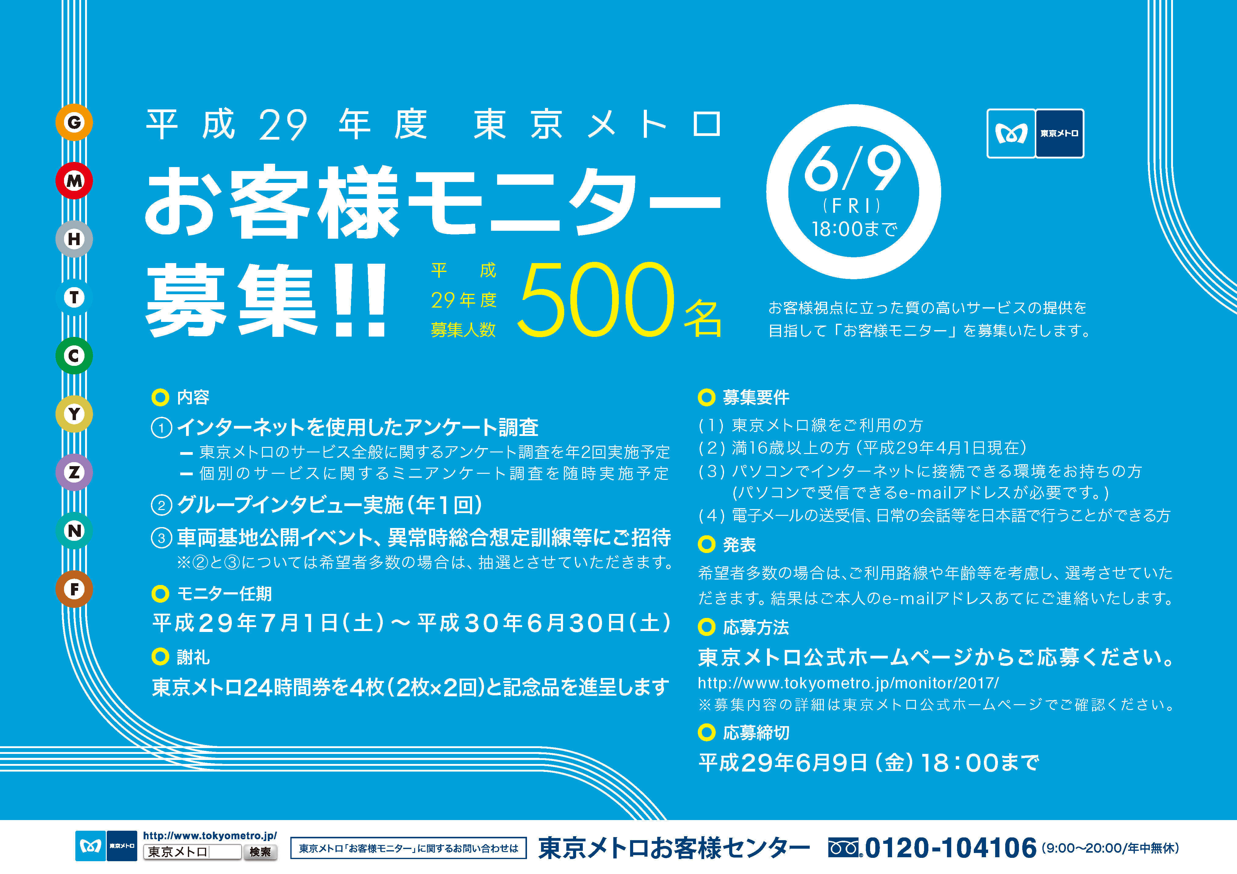 「平成29年度 東京メトロお客様モニター」募集(PDF:378 KB)