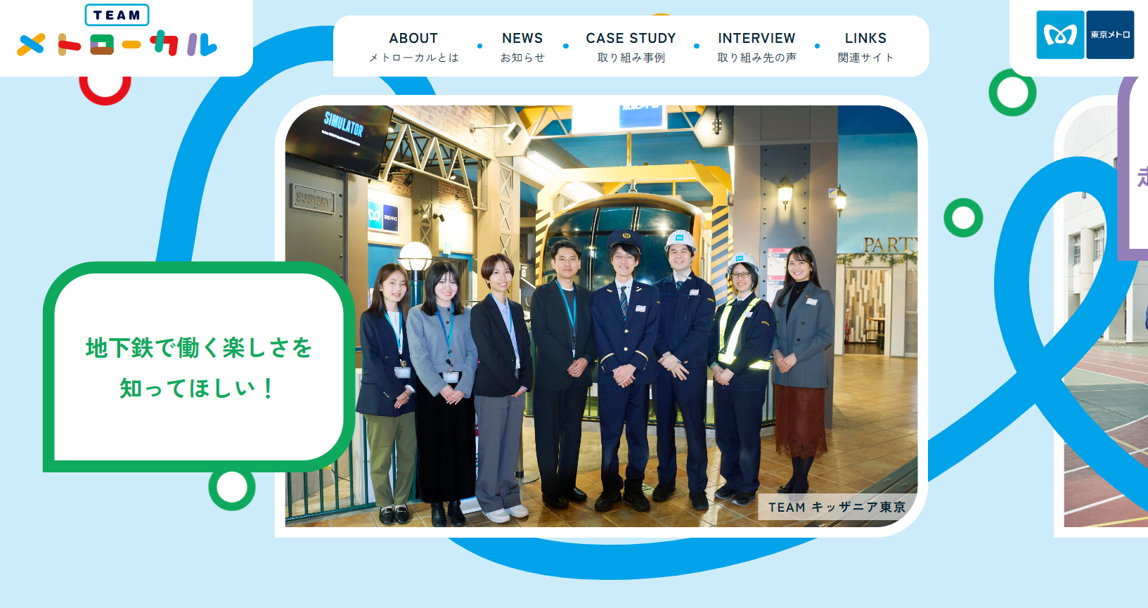 東京地下鉄株式会社(本社:東京都台東区、代表取締役社長:小坂 彰洋、以下「東京メトロ」)は、本日、地域共創サイト「TEAMメトローカル」(https://team-metlocal.jp/)を開設しました。