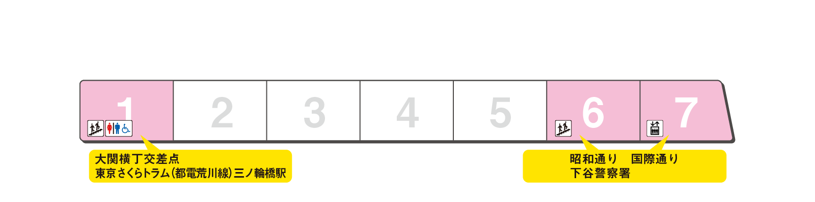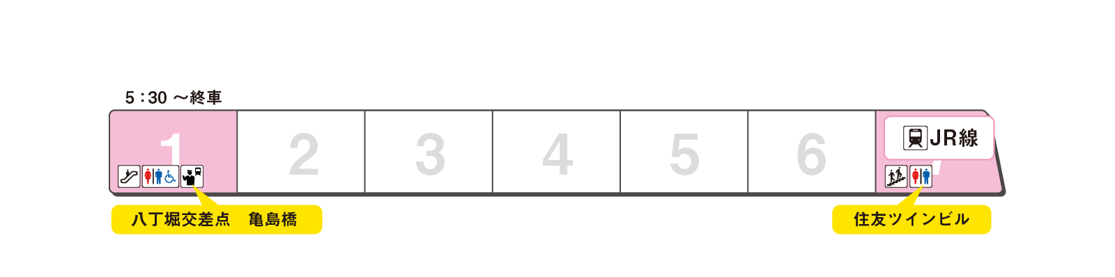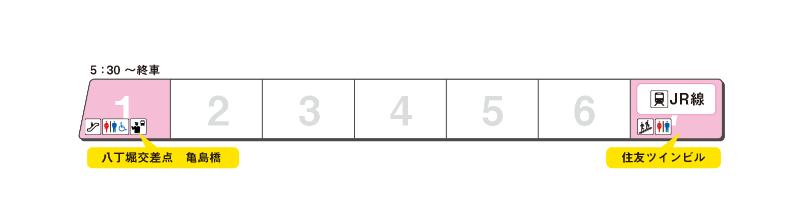 のりかえと出口に便利な乗車位置をご案内します。