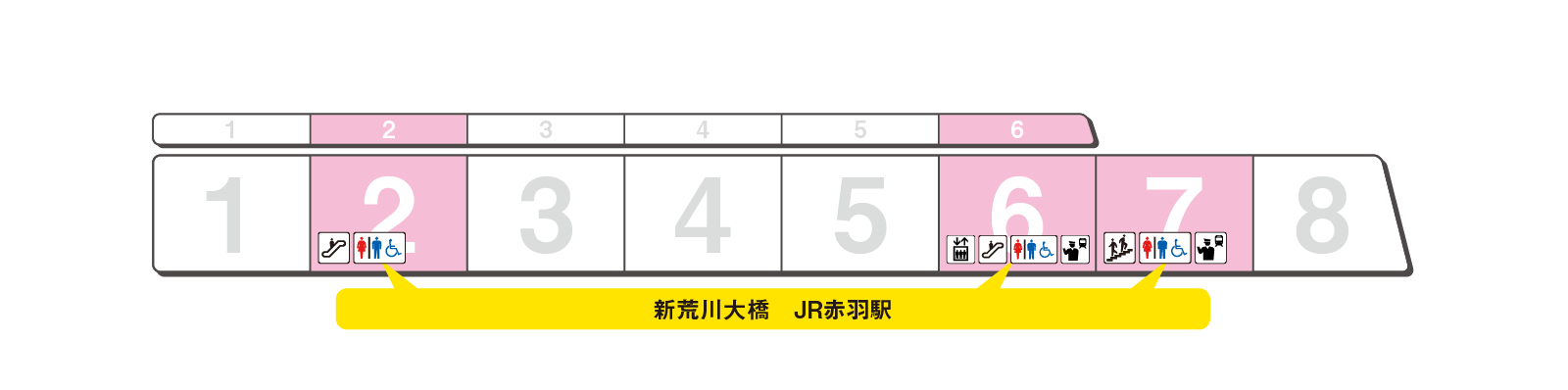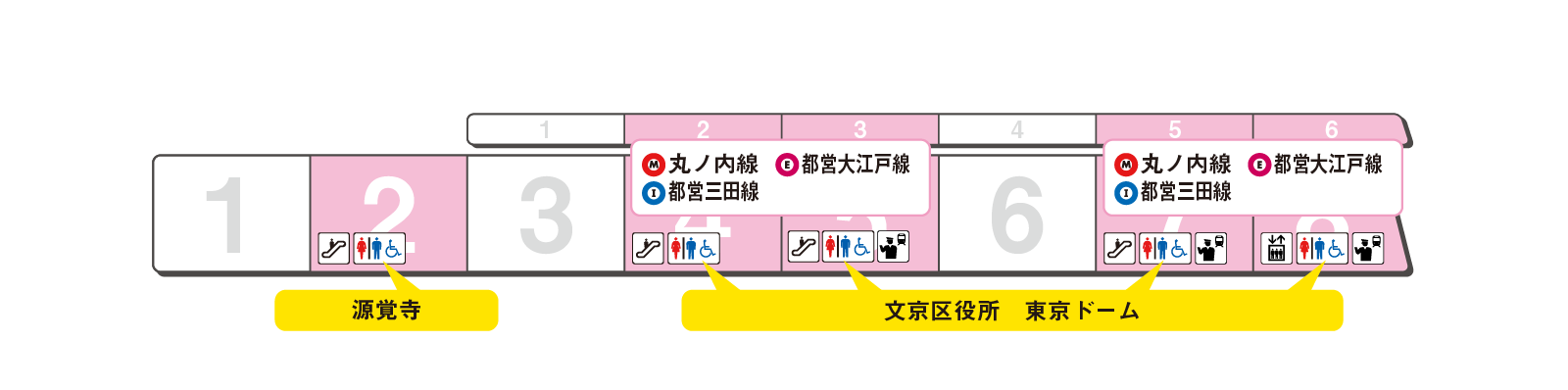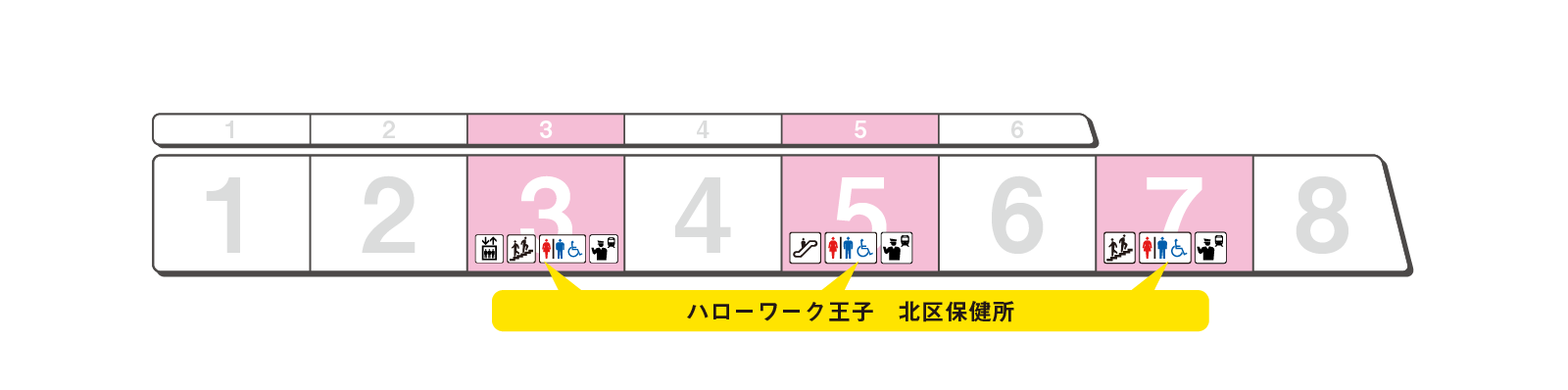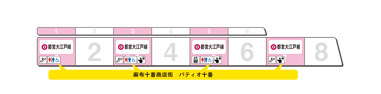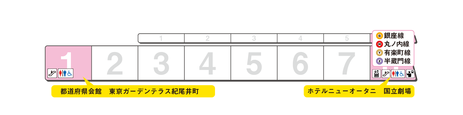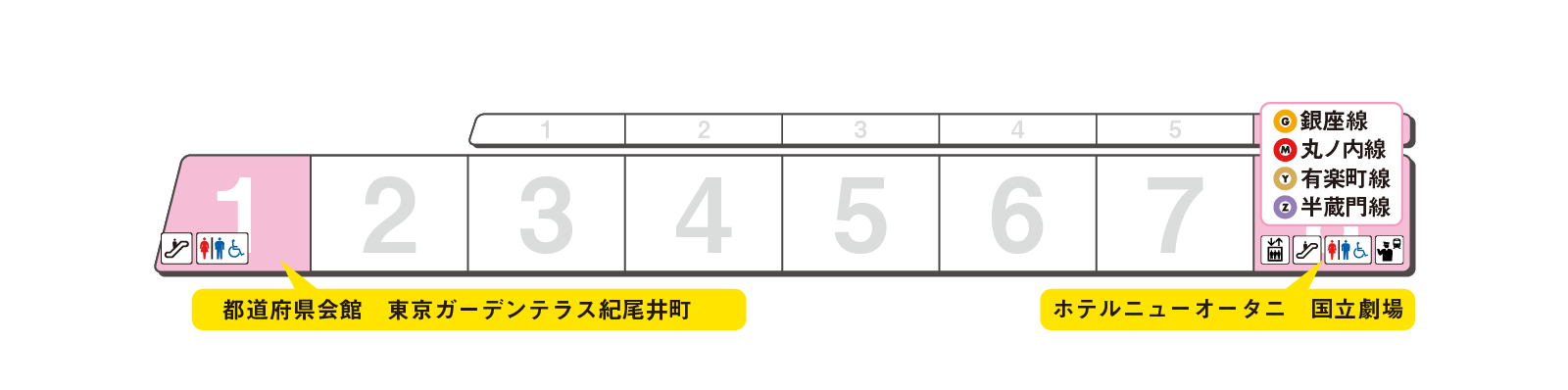 のりかえと出口に便利な乗車位置をご案内します。