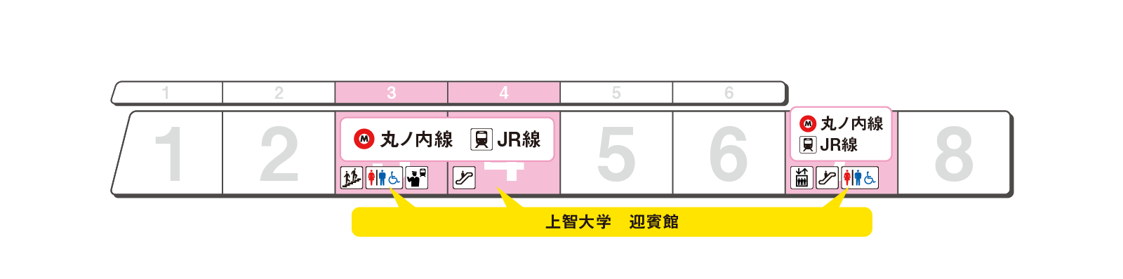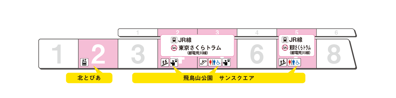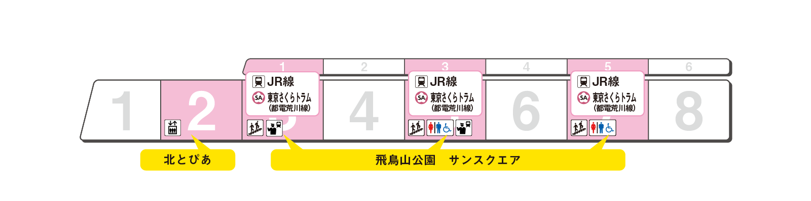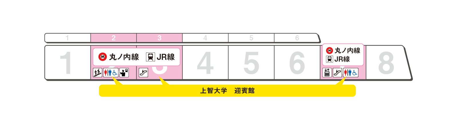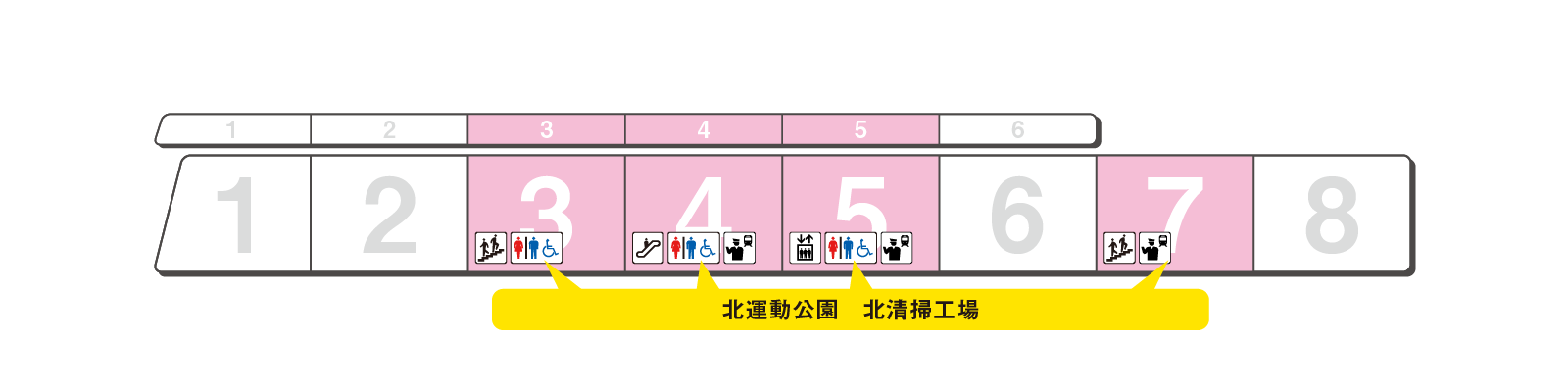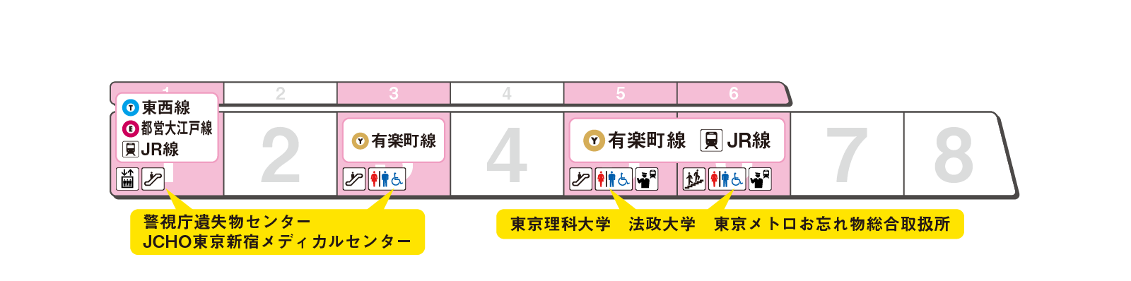 のりかえと出口に便利な乗車位置をご案内します。